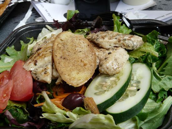 We found Panini Pete’s, and snagged a place in the gazebo, which I thought was ‘outside’.