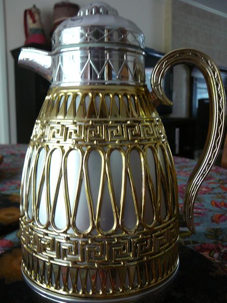 This great thermal jug from Qatar had coffee still warm after five days – not hot, but warm.