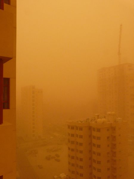 I found this on AOL News/Huffpost this morning, and thought of the awe-inspiring dust storms in Kuwait and Qatar. Living on the tenth floor and watching the enormity of a dust storm rolling into Kuwait City was like being in the middle of a thunder-storm – there is nothing you can do to stop it. It can be terrifying. You realize your true importance in the larger scheme of things (miniscule) and the enormous power of God. You also realize that what you are seeing is just a tiny fraction of his true power.