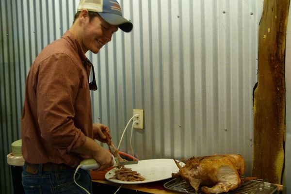 The guys do the turkeys. They may have help, but the turkeys seem to be the guys prerogatives. They also carry in the hams.