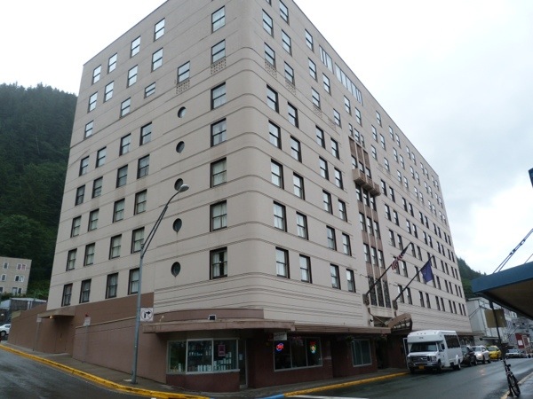 This is the Baranof Hotel, where my parents met. It used to be a very grand hotel, but it is now a Westmark hotel, and while it pretends to still be grand, it is shopworn and tired, and needs a major overhaul to be back in the game. We ate lunch there – to honor my parents meeting – and it was also a very mediocre meal. The very chipper waitress, Holly, tried to make it nice, but the Capitol restaurant needs better lighting and brighter colors. It was very, very dark.