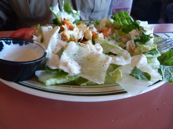 AdventureMan had salad and salmon quesadillas; I had Ceasar salad with grilled salmon: