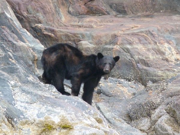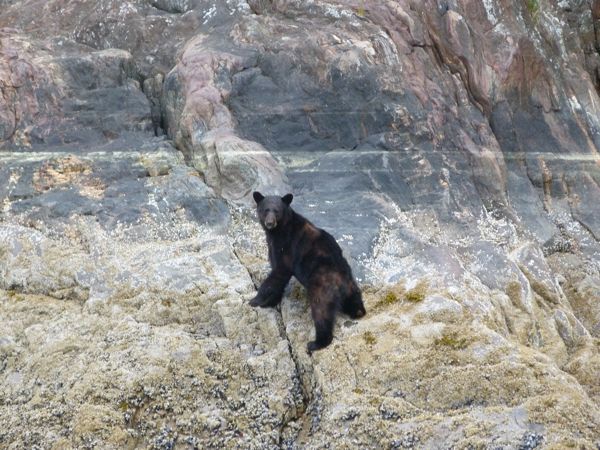 These bear made me so sad. Look how skinny they are, down at the bottom of tall, steep cliffs, eating barnacles. Bear eating barnacles – they must be starving. Some of them look all molty and have fur coming off.