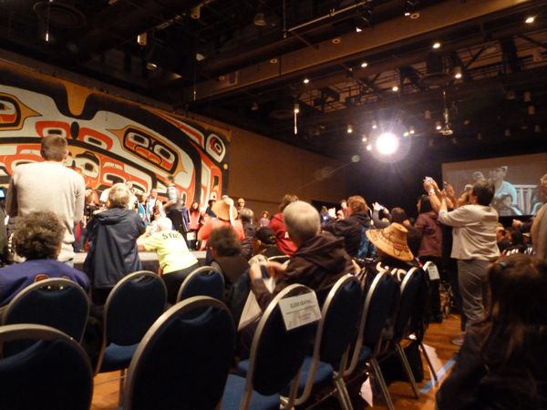The front and center rows were reserved for the elders, and once the dancers started, every seat was filled. There were wet eyes, and open weeping. There were joyful moments, too, when the dancers would invite ‘all the Eagles’ or (something I didn’t understand) to rise and join them in their dance. My own heart swelled to witness their joy.