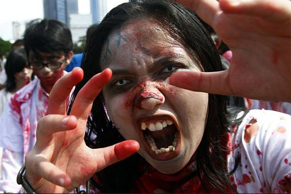 Why is it that zombies are so terrifying to me? I have always thought it was because they exemplify the worst in us, the kinds of things we do when we are in mobs fueled by passion and violence, or even smaller groups where we go places and do things we would never do on our own.