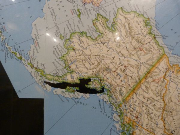 This was a map of the Exxon Valdez oil spill, from which Alaska is still recovering. We learned something interesting, and that is that as horrible as the spill has been for the environment, it put Alaska on the map, raised awareness, and that is when the tourists really started pouring in, maybe like to see the splendors of Alaska before they are destroyed by oil spills or climate change.