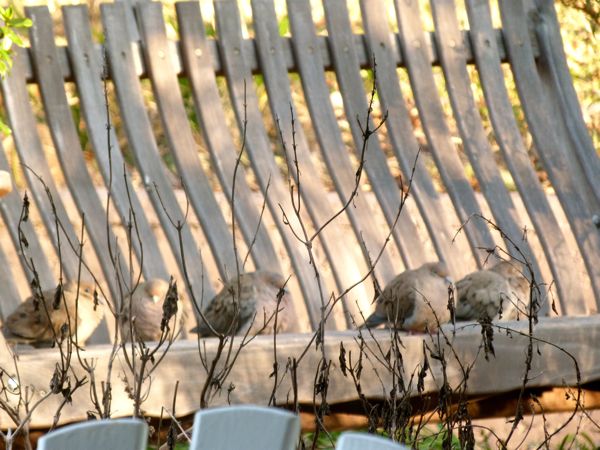 And that is how my doves must feel. Normally, they sleep under our rosemary bush, or snuggle down under the lavender. I think, now that we have pulled a lot of our larger potted plants in close to the house under the awning, they are sleeping under our plants. This morning, they know I am here, with my camera, and they don’t care. They want to catch a few more ZZZzzzz’s in the first few rays of the early morning sun.