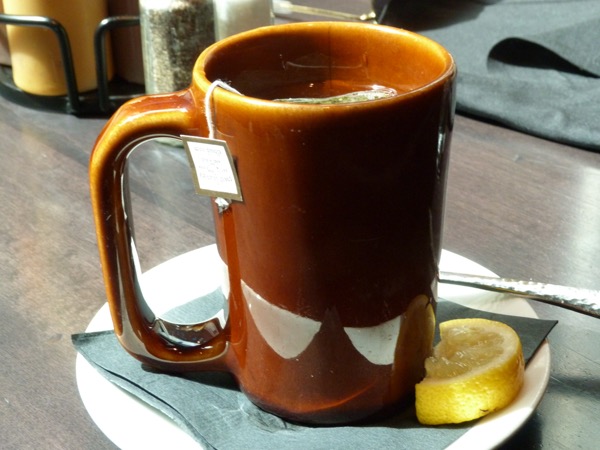 AdventureMan is really cold; he needs tea to warm him up inside and out. He wraps his hands around his hot hot cup of tea.