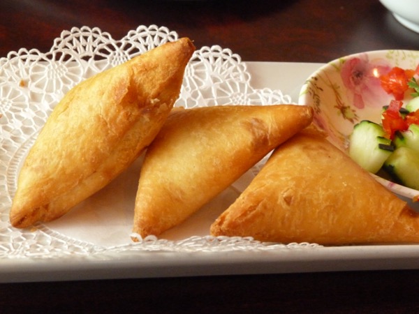 The menu was huge. We ordered samosas, which were unusual – maybe filled with sweet potato? Whatever it was, it was fabulous.