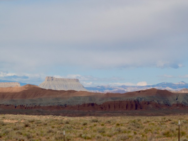 The scenery, even along the major highways, can be distractingly spectacular. This is, I believe, along I-70, which we take for a short time to get to the scenic road we want to be on to get to Capitol Reefs.