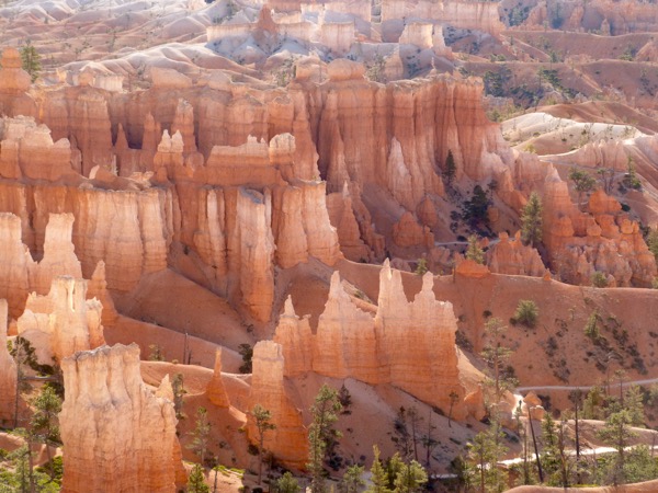 These eroded sandstone pillars are called Hoodoos. You can buy all kinds of sweatshirts and T-shirts (we didn’t) that say “I hiked the Hoodoos in Bryce Canyon”
