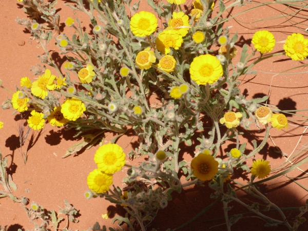 He has shown me the road on the map, and we THINK we can make it, but his rental is a little low to the ground. I notice that the road number obscures the fact that for four miles, going into Arizona, the road is actually a track. We hold our breath, as the pavement ends, the road turns into washboard, the road forms crevasses, and we just hope the road doesn’t wash away. This is one of the longest four miles ever.