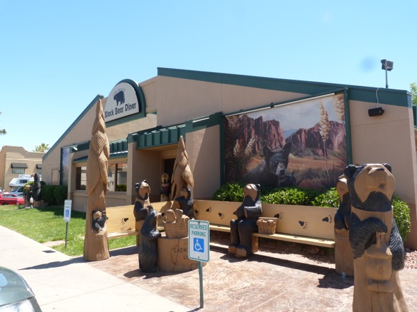 We are starving. We head back into Saint George, UT, where we find this really fun restaurant with a bear theme, and pretty good salmon. I’m a happy woman.