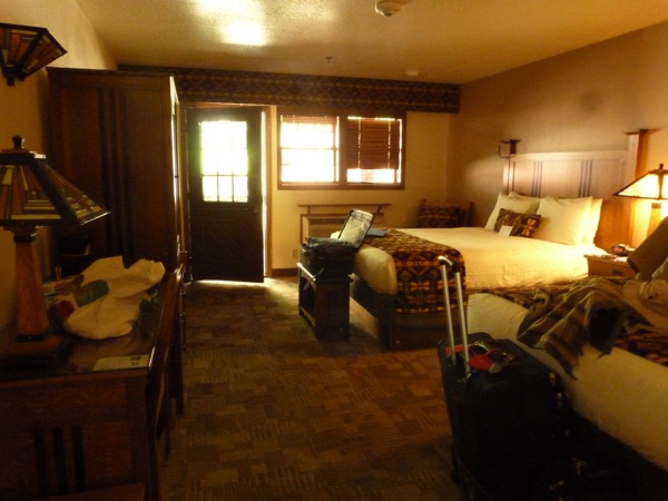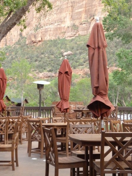 Our reservation packet from Zion National Park included a red tag to hang from our rear view mirror. It allows us to drive to the lodge in our own car, since we are staying there. It also allows us in and out of the park, which comes in handy for us restless types. Check in is perfunctory; some lodges have chirpy, friendly receptionists, Zion has slow, surly receptionists. We like our spacious room and balcony, but we miss the privacy of our cabin.
