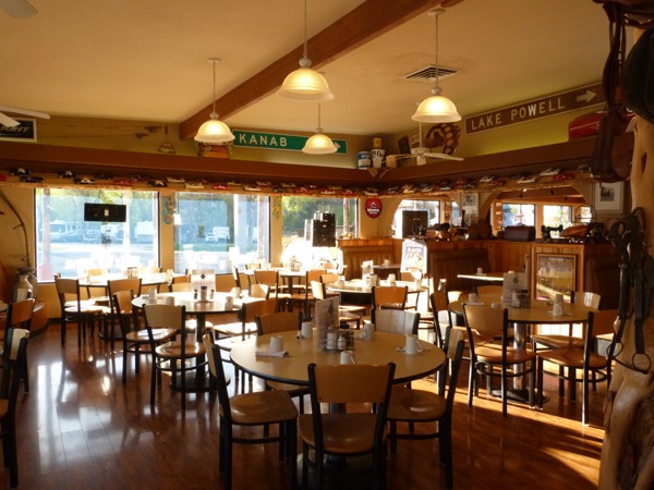 We know where we will stop for breakfast – The Thunderbird, In Mt. Carmel Junction, where we had lunch the day before. It is right on our way. Actually, I had a healthy breakfast, but I had to order this cinnamon roll, which AdventureMan and I nibbled on, and then took the rest with us in case we were stuck somewhere in a remote place and needed some sugar-energy. This roll had a lot of sugar-energy.