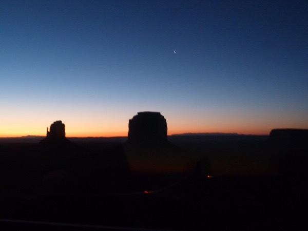 I woke up early to take this photo for you. This is sunrise in Monument Valley. You want this on your bucket list. Look, you can even see a star and the dim lights of the first trucks heading down into the valley to capture the early morning light.  🙂