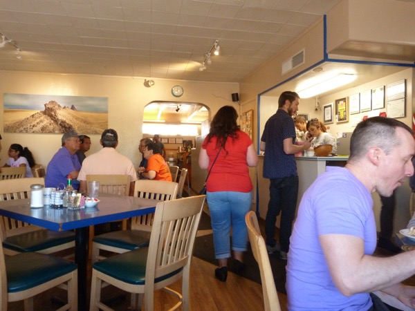 But we are starving. We see Amigos on the side of the road as we are heading to Monument Valley, and decide to give it a try. As soon as we get inside, we know we are in the right place. There are local people. There is a lunch special up on the blackboard. The smells are wonderful.