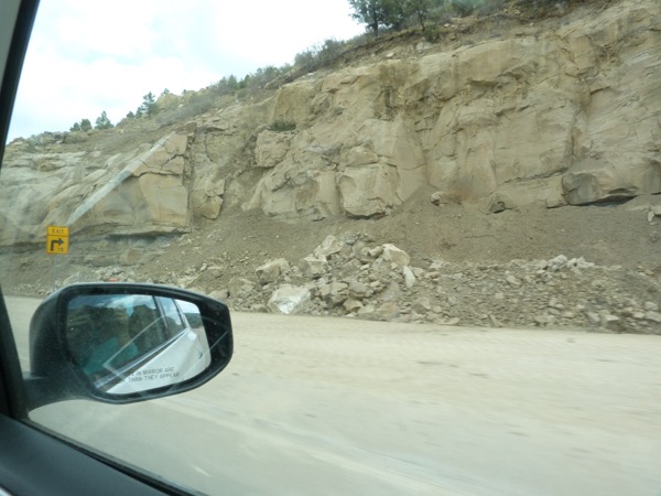 We are making really good time on the way to Denver when all of a sudden, on a not so busy freeway to this point, everything stops. “What on earth???” AdventureMan asks, and I have no clue. “Probably rockfall,” I say. It’s happened to me before on Colorado roads. Sometimes a huge boulder will just dislodge and fall on the highway. It can really hurt somebody if it hits them – of if they don’t expect a big boulder in the middle of the road and they hit it.