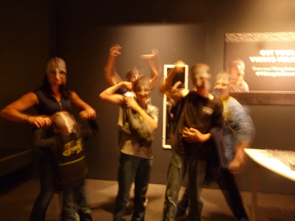 The exhibit was full of school groups, with booklets to find the answers to. These kids were having so much fun, and learning so much. This group donned Viking helmets for a photo, but were in constant motion (sigh) in the low light.