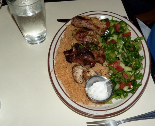 My sister had a cucumber soup. We all had lots of mohammara and bread. As we ate, the restaurant filled. Mike explained to each table that things might not go well, but every table seemed to get a great dinner. It’s the old adage, Under Promise and Over Deliver. Makes customers happy every time. 🙂