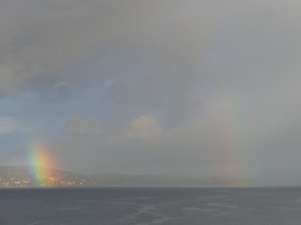 View from the Explorer’s Lounge aboard the Viking Sky: a double rainbow!
