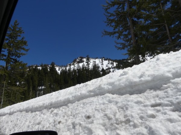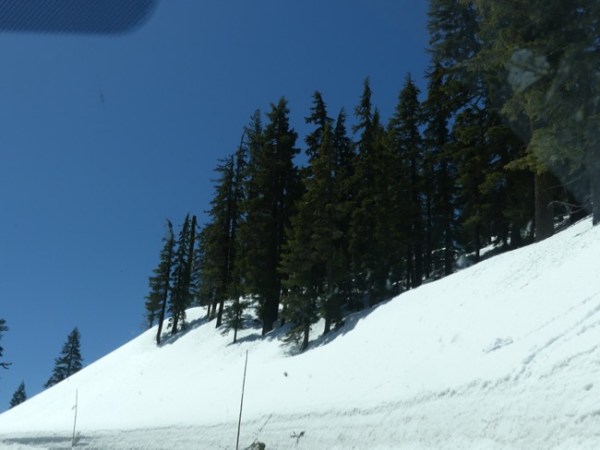 And then, we hit the snow. I keep hoping the roads are open all the way up to the Crater, and the snow keeps creeping higher, and into the road 😦