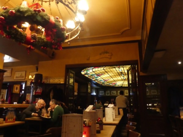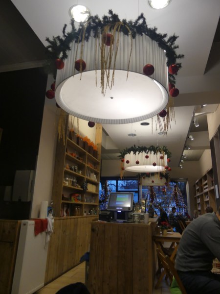 We had lunch at Peter’s Bauhaus. It looked so inviting, all decorated, and people were waiting in groups outside to be allowed in. It paid, in this instance, to be just two people; they took us right away and sat us at a table with another couple. We chatted a little – and then just had our own quiet conversations, sharing space but enjoying our own company.