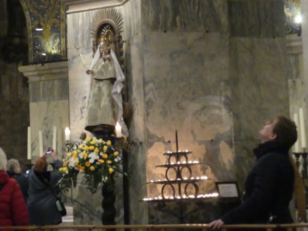 Below is a very famous statue of St. Christopher, carrying the Christ Child across a river, and now he is the patron saint of travelers.