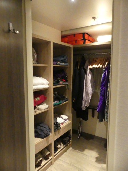 Lovely closet! Room for us both to put all our things away, and hang up hanging clothes, store our luggage and even dress when the other person is still sleeping and one of us really needs some coffee 🙂