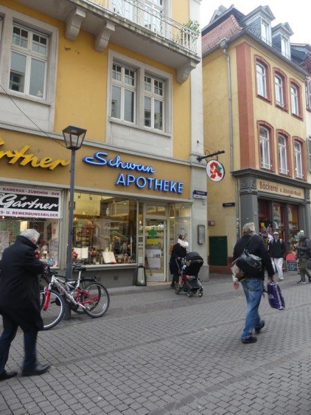 Late in the day, I started to have a sore throat, and here was an old pharmacy which had even been there when I was a student here. I went in, and spoke with the pharmacist, who checked that the saline spray I wanted didn’t have anything but water and saline, and then she asked a few more questions and offered me a mild . . . something . . .it wasn’t an antibiotic, and it wasn’t something sold in the United States, but we have often found that cough and cold and respiratory medications have stuff not allowed in the USA that can be very effective. She said it would stop my throat from hurting.