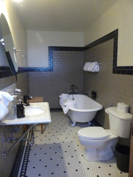 I loved this old time bathroom with it’s clawfoot tub and octagon-tiled floor.