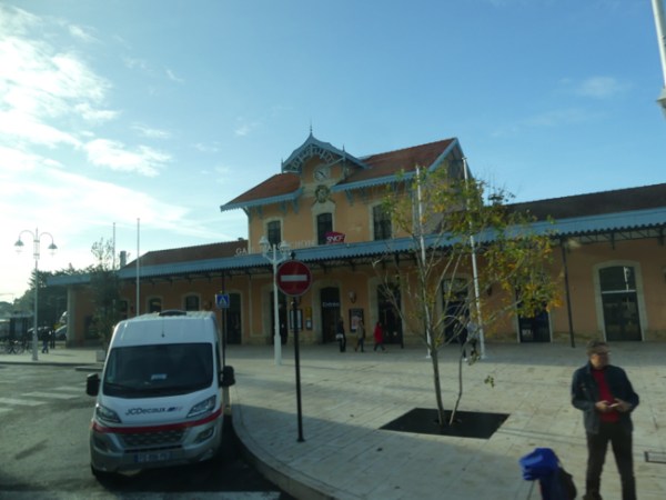 We got on a bus for a 2 1/2 hour ride from Pauillac to Arcachon. This is the train station in Arcachon. You can see it is a beautiful day.