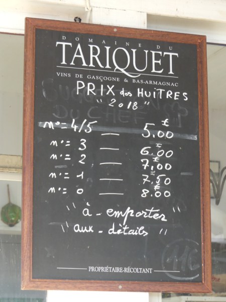 The prices of oysters are controlled by the French government. Every place, we are told in Arcachon, charges about the same.