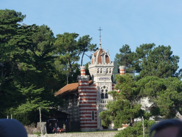 This is a castle and a museum, but it is closed for the season. You can see it is beautiful inside; it is also used as a venue for concerts, weddings, parties and receptions. It contains a museum with a collection of carriages and carousel horses when we were not able to visit. I had to shoot the photo below through a locked gate. 😦