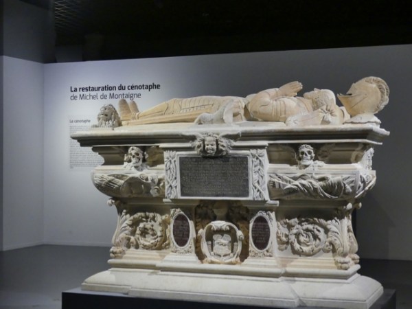 The cenotaph of Michel de Montaine in its finished splendor – the photo below this one below is a shot of the video record of the restoration process, the cleaning, the filling in, the incredible detailed work it took to restore a dingy, broken old burial crypt.