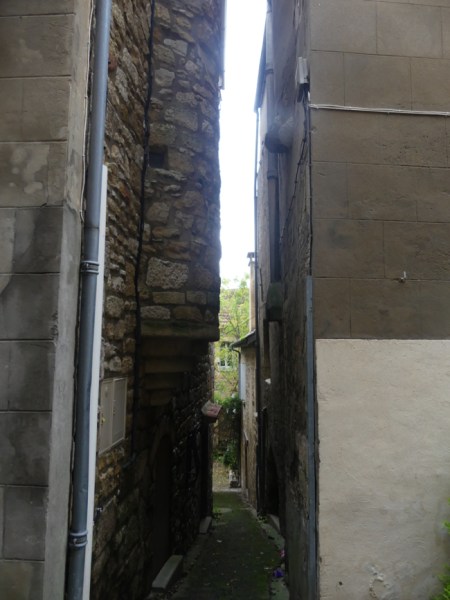 The space between these buildings is tiny! You could walk down it, but you couldn’t stroll a baby down this space.