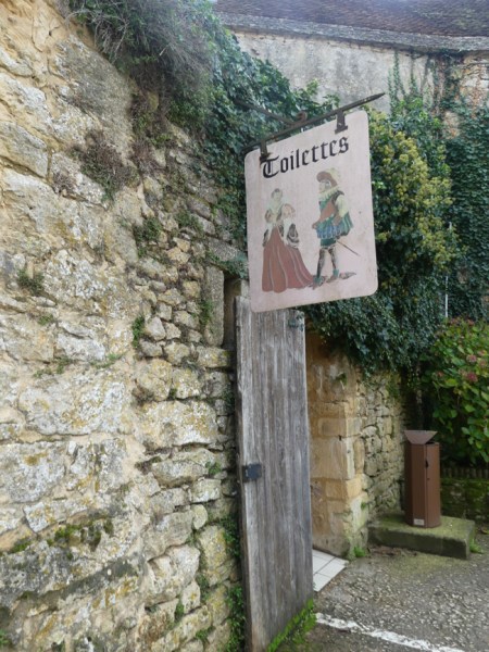 They have put some thought into presentation at Beynac. Even at the end of October, there are groups and students touring, and my husband and I eluded them as best we could. Once, I took a photo just to show you what it might really be like if you were in a group. Love those stakes on the upper walls to deter a ladder-bourne attack.
