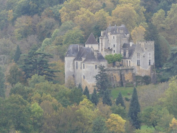 A distant view of Beynac only emphasizes how steep the access would be to try to take this castle.