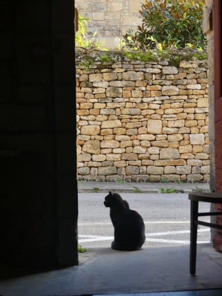 Domme is walkable, and beautiful. There is something else about Domme – there are cats, lots of cats, and there are dishes out, hidden under benches, or visible on a step up to a house, or at the side of a doorway into a church. I imagine the cats keep the rats away, but it is lovely to see them repaid so generously and lovingly. The cats all looked very well fed.