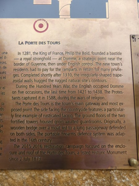 Major gate into Domme, the Porte de Tours: