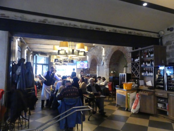 We take our umbrellas and walk to downtown Cahors, where we find the Brasserie d’Isa. It is full of laughing people, people greeting one another, people sipping wine and eating good food. We love the place.