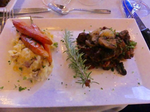 I’m used to a little stewier beef burgundy, but I liked this one just fine. It was rich and textured, and had a lot of flavor. I was delighted that they kept the portions French-like, smaller. When food is well prepared and full of flavor, you don’t need to eat so much.