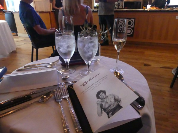 When the day came, we were busy with normal family projects and a grandchild. When the grandchild got picked up, a storm was rolling in. I got in my nightgown, and settled in with a great book I am reading. At 5:47, AdventureMan called from his office “Don’t we have a dinner tonight?” and oh yes, and it started at 6:00. LOL, we scrambled. We got there by 6:10, last ones to arrive but ten minutes could happen to anyone.