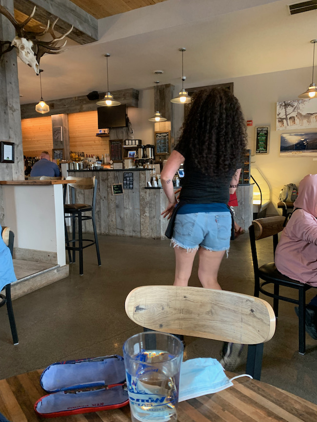 As we are waiting, a couple comes in and asks the Maitre d’ if they have “Sloshies.” The Maitre d’ says no, but they can find them in the Bodega at the nearby filling station. The couple tell us that Jackson Hole is famous for “Sloshies” and exit to go find them. They also start a tirade against masking, social distancing and young people who won’t work because they are getting unemployment. If you’ve ever worked with the poor, you know that unemployment doesn’t do it. It is just a supplement.