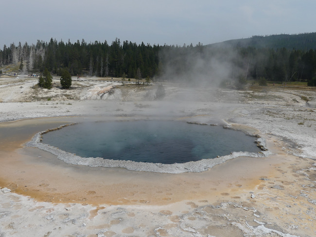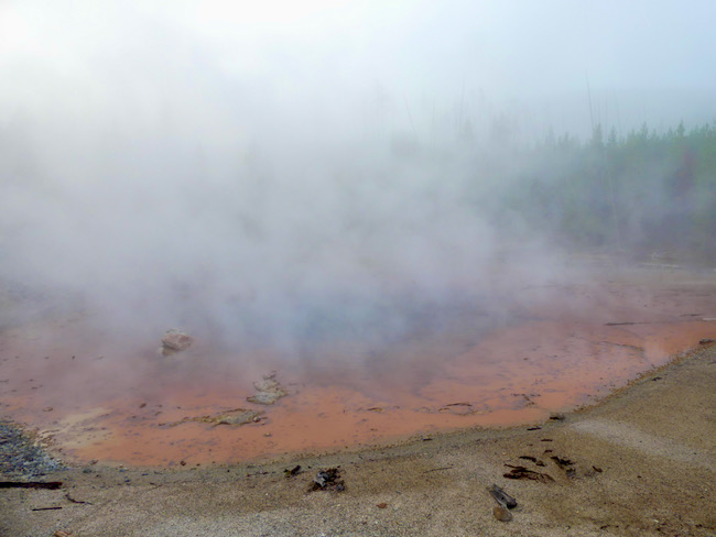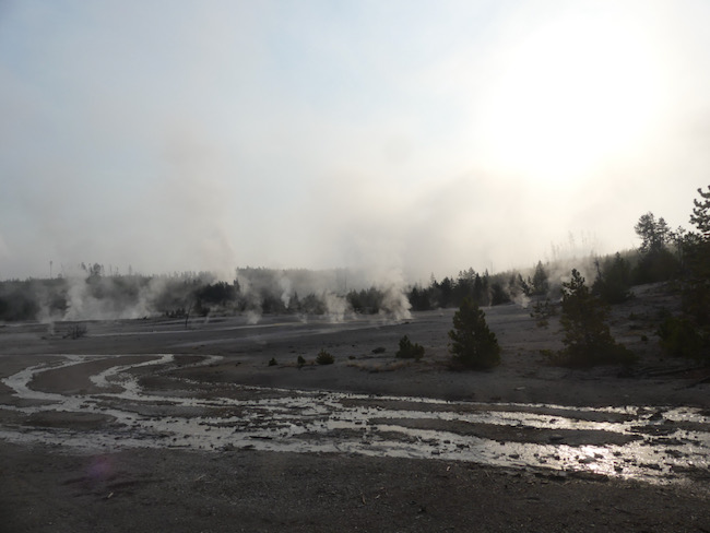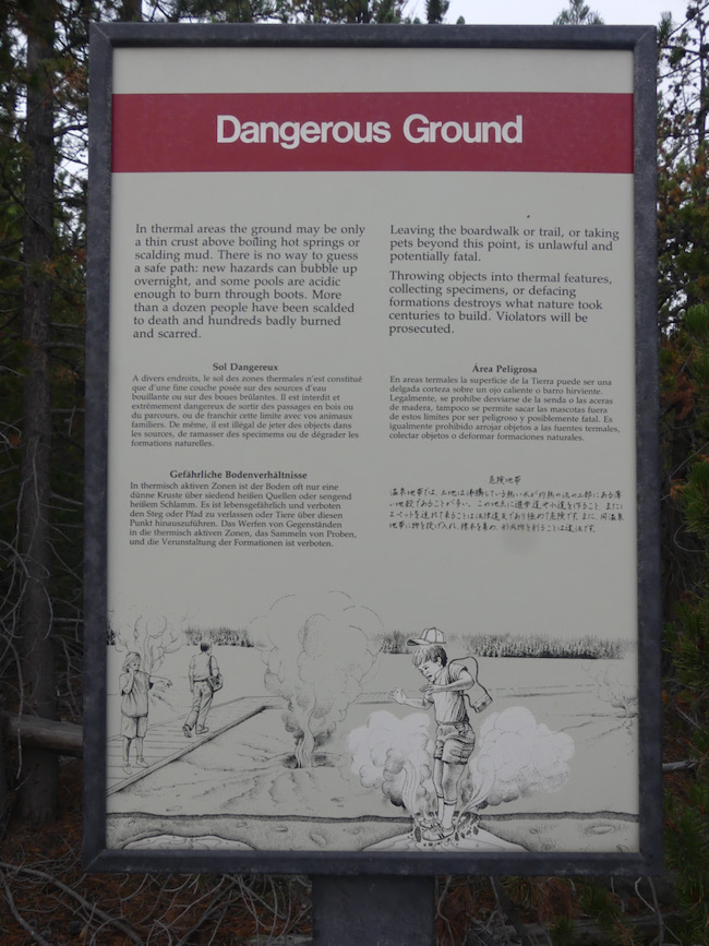 AdventureMan tells me – and this is really true – that a man fell into one of the springs at Norris Basin, and died, and that his body dissolved in the chemical rich pool. He didn’t die on purpose, but, like many tourists, he wanted to take a dip. His sister says he tripped over his own flip-flop, fell in and died a terrible death, boiling to death. Aargh.