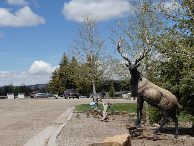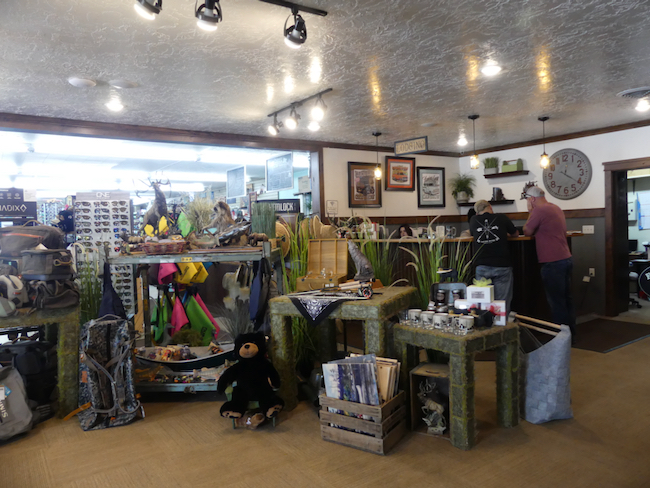 We stopped for lunch at the Flaming Gorge Resort, not at all what you think of in terms of a resort. There were some nicer-looking log cabins and a whole lot of RV parking and camping facilities. The Restaurant/Gift shop was very down-home; the gift shop stocked with every kind of fishing equipment you can imagine a fisherperson would covet; clothing, lures, rods/reels, things I don’t even know what they were.