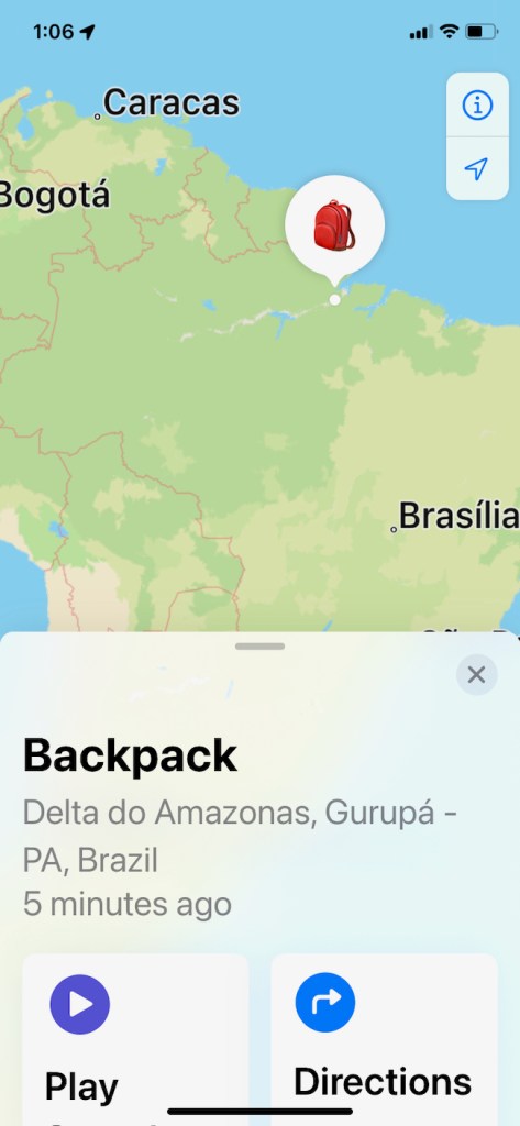 Today, oooh la la, my AirTag heads up the Amazon river!