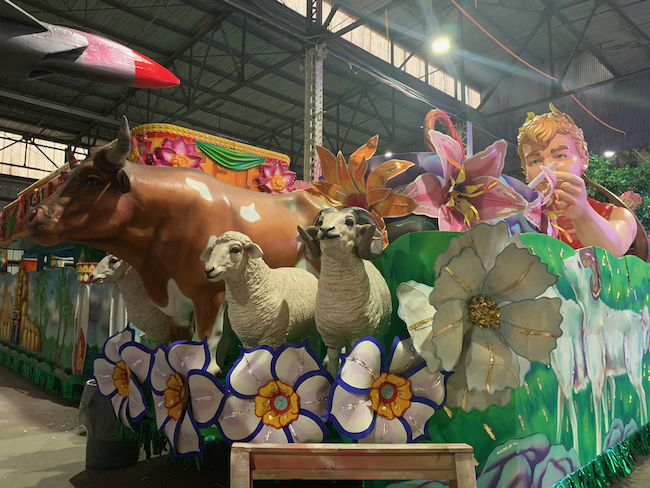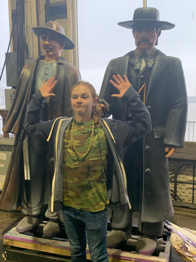 Then, because they are older now, we take them somewhere new – the Mardi Gras Museum. It’s a huge warehouse where floats are stored, restored, and created, and where grand parties are held during Mardi Gras. I wasn’t sure the kids would like it, but they did. We watched a short historical movie, learned a lot, and then had a ball self-touring the collection. You can take a guided tour, but we all have short attention spans and headed out to start in the less populated sections.