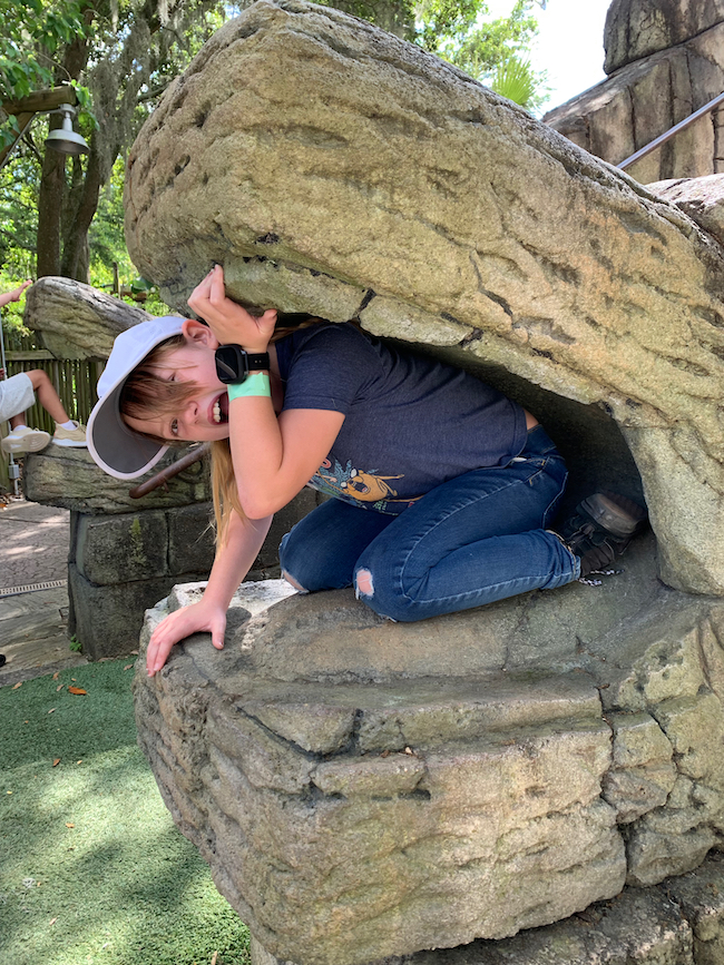 Next stop, the Audubon Zoo, another tradition, where we buy a Krew membership every year so the whole family can go when the spirit moves us. I didn’t think my granddaughter could fit into the monster’s mouth anymore, but she assured me she could.