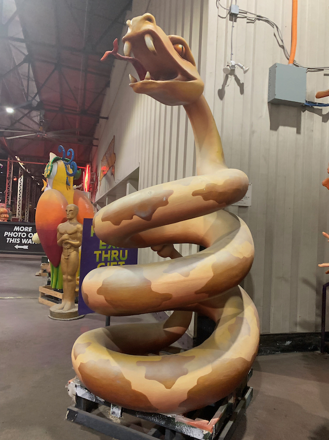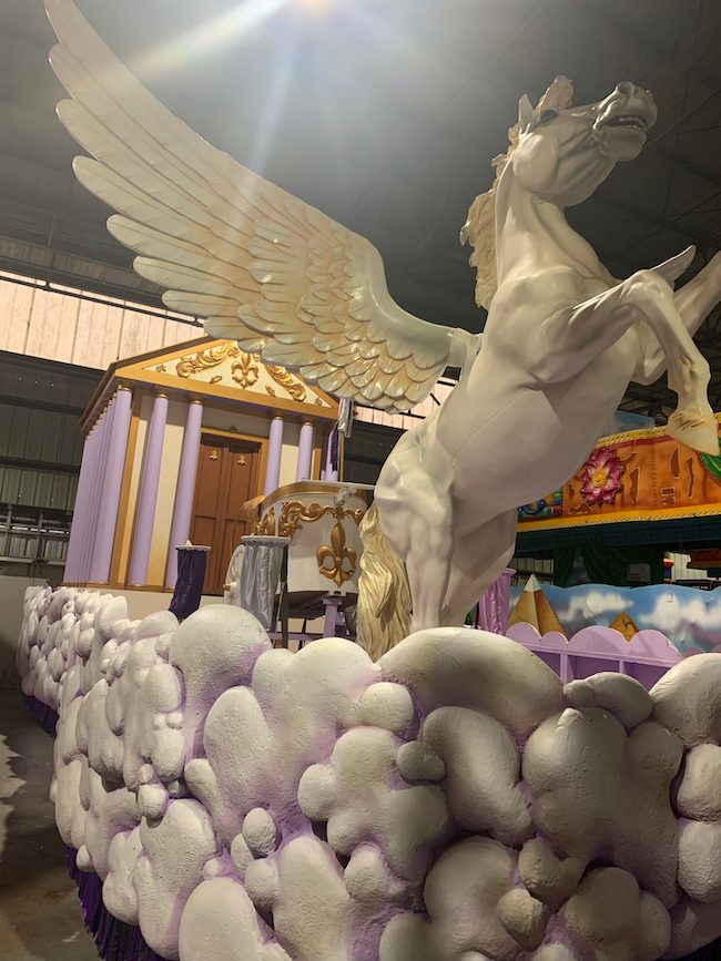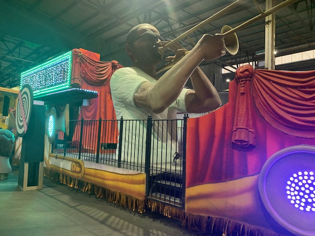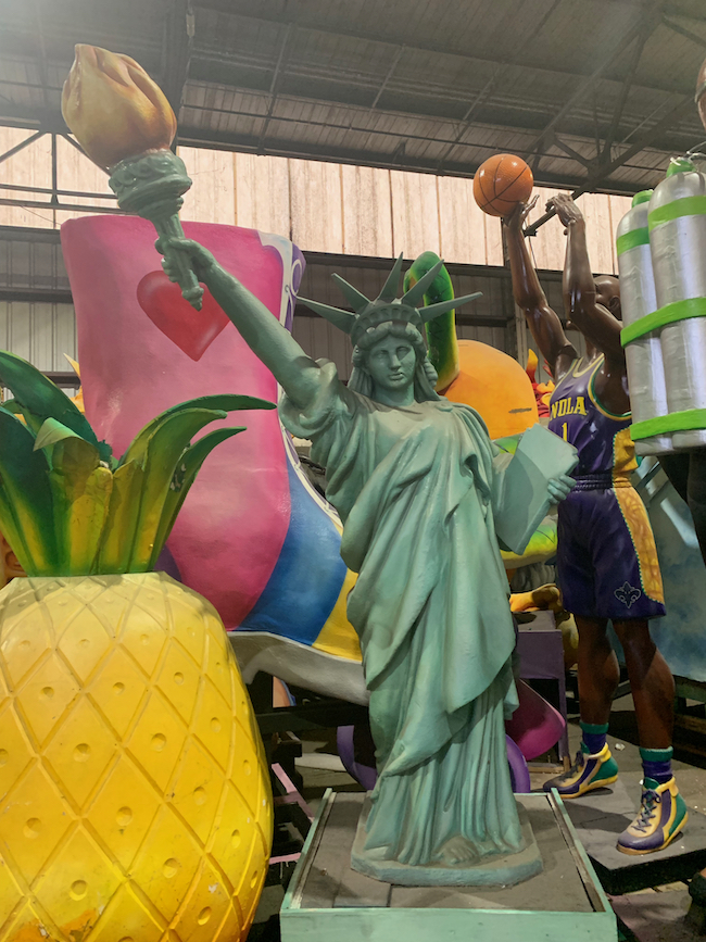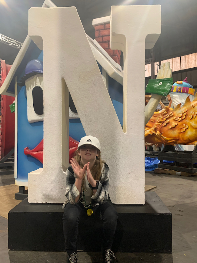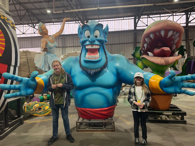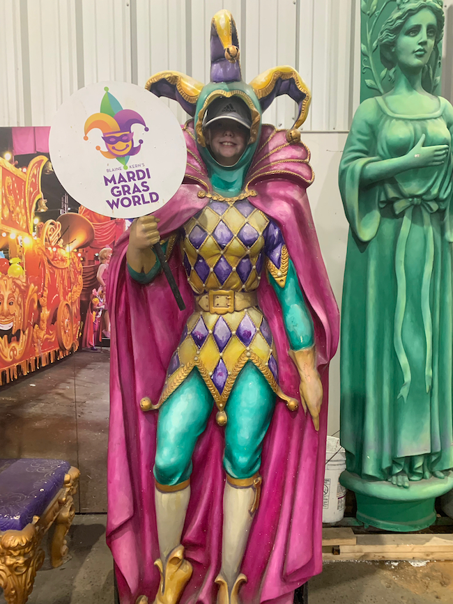 Then, because they are older now, we take them somewhere new – the Mardi Gras Museum. It’s a huge warehouse where floats are stored, restored, and created, and where grand parties are held during Mardi Gras. I wasn’t sure the kids would like it, but they did. We watched a short historical movie, learned a lot, and then had a ball self-touring the collection. You can take a guided tour, but we all have short attention spans and headed out to start in the less populated sections.
